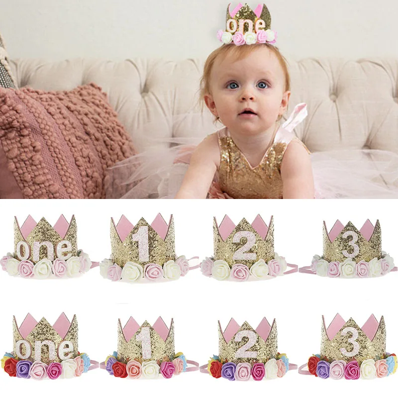 Baby-Geburtstagsparty-Hut, Prinzessin-Kronen-Stirnband, 1. Geburtstag, Dekorationen, Babyparty, eins...