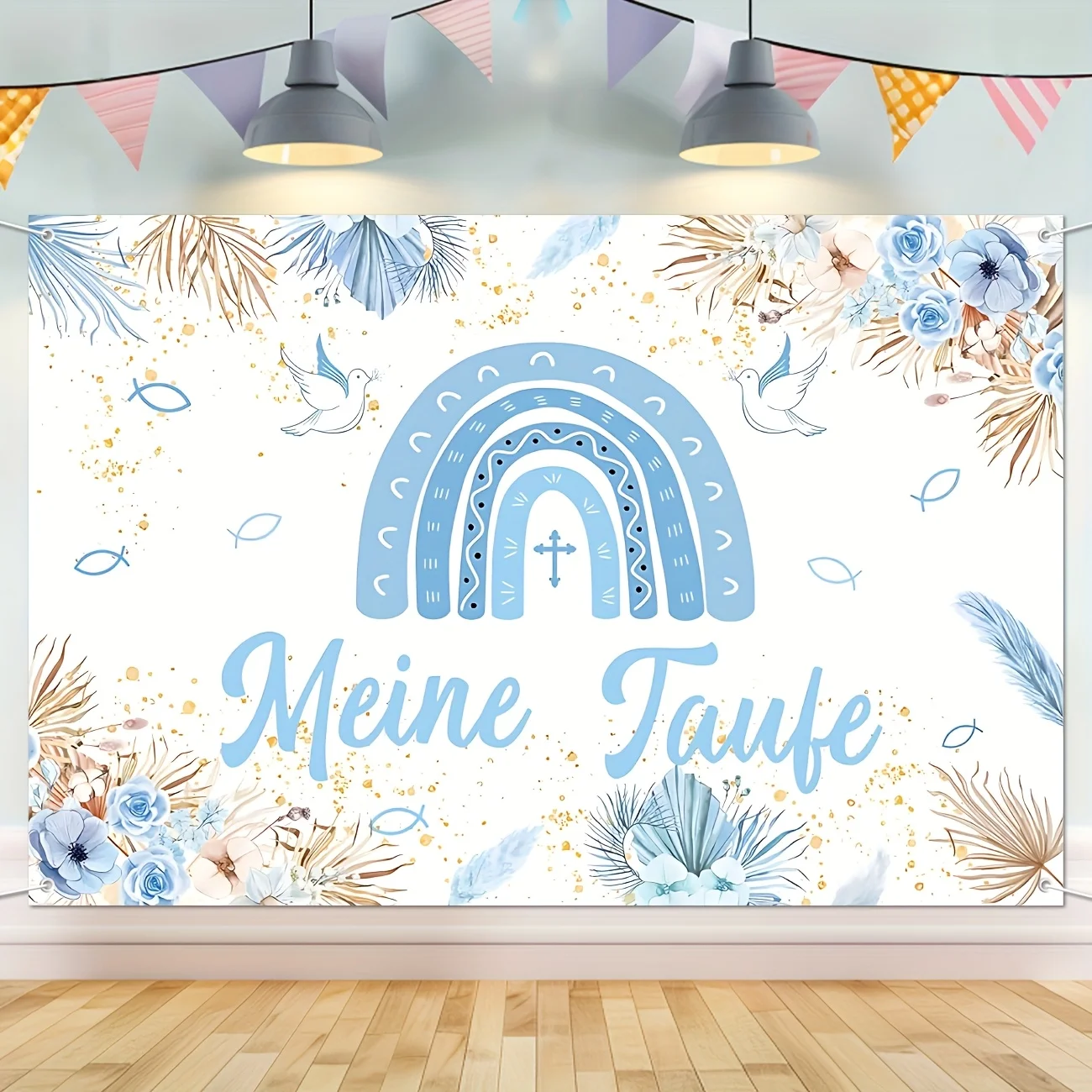 Meine Taufe Party Banner Meine Taufe Deko für Junge Blau, Meine Taufe Rainbogen Banner Hintergr...
