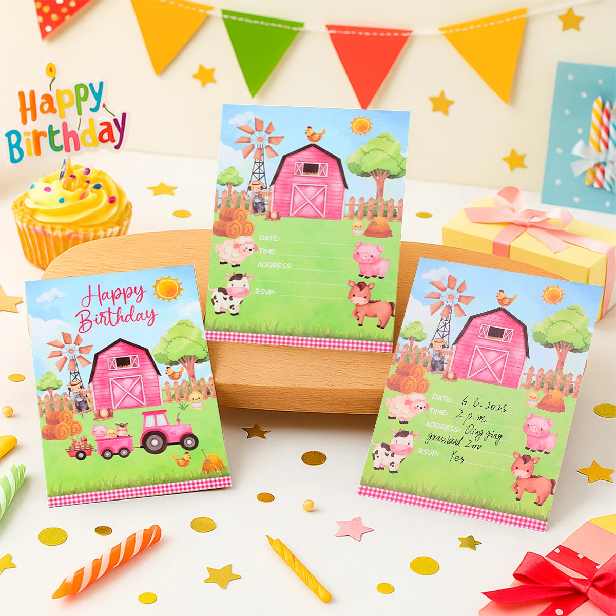 12 teil/los Cartoon Bauernhof Kuh Schwein Pferd Tiere Thema Einladungskarten Geschenk für Kinde...