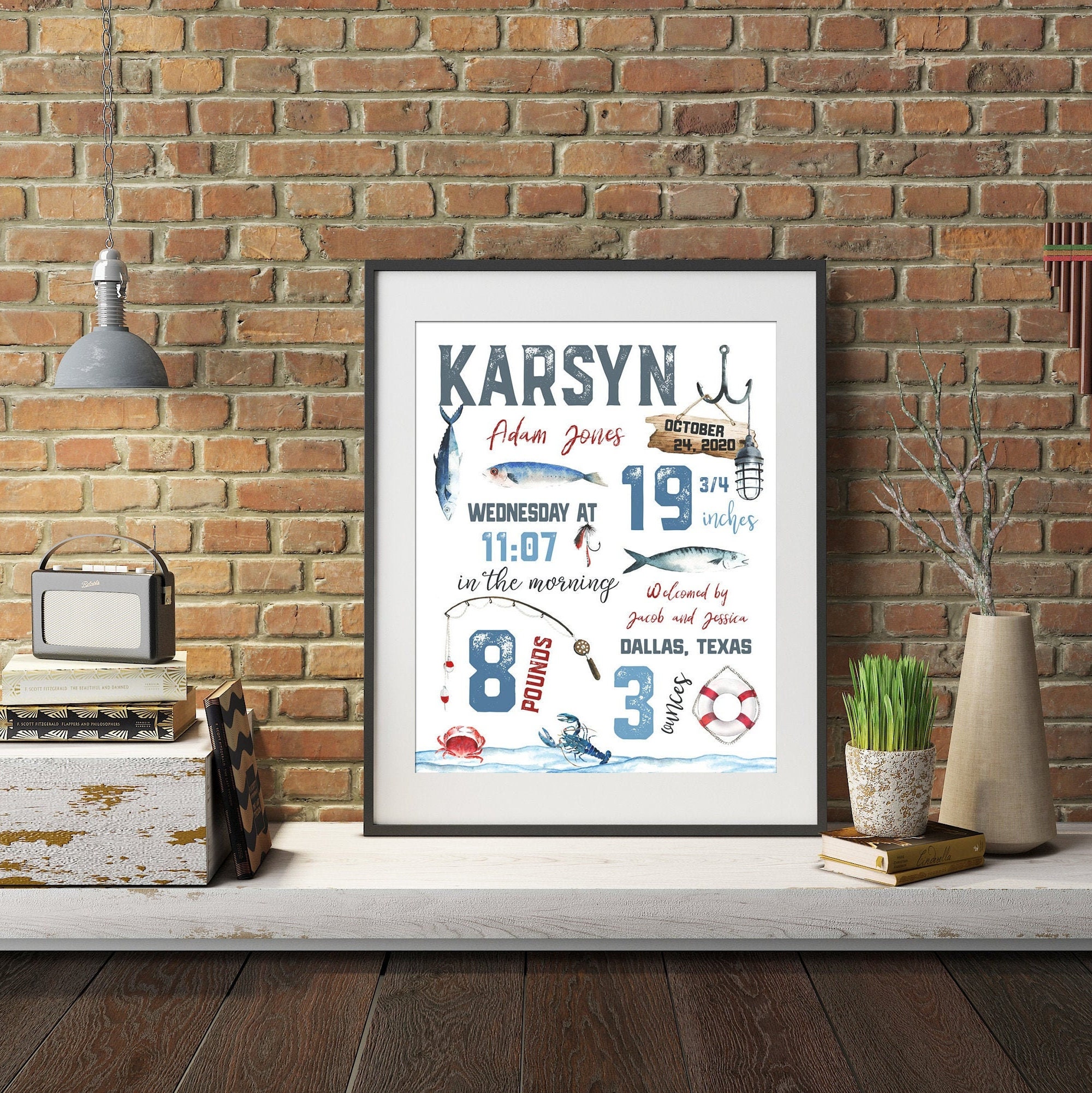 Diese entzückende Fischer Motiv Geburtsanzeige ist eine tolle Ergänzung zu jedem Kinderzim...