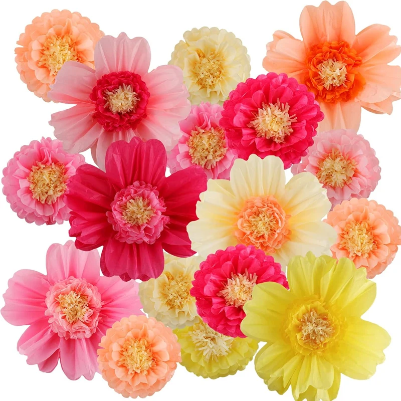 12 große bunte Taschentuchblumen, 50,80 cm, handgefertigt, riesige Karnevals-Papierblumen, gee...