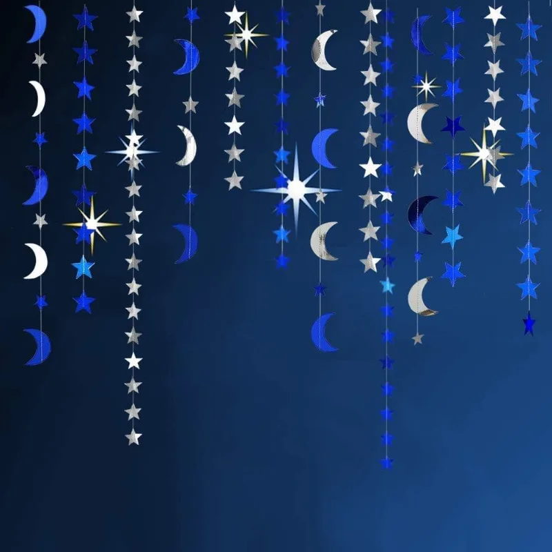 Königsblau Silber Sterne Mond Girlanden Kit Stern Girlande/h&a...