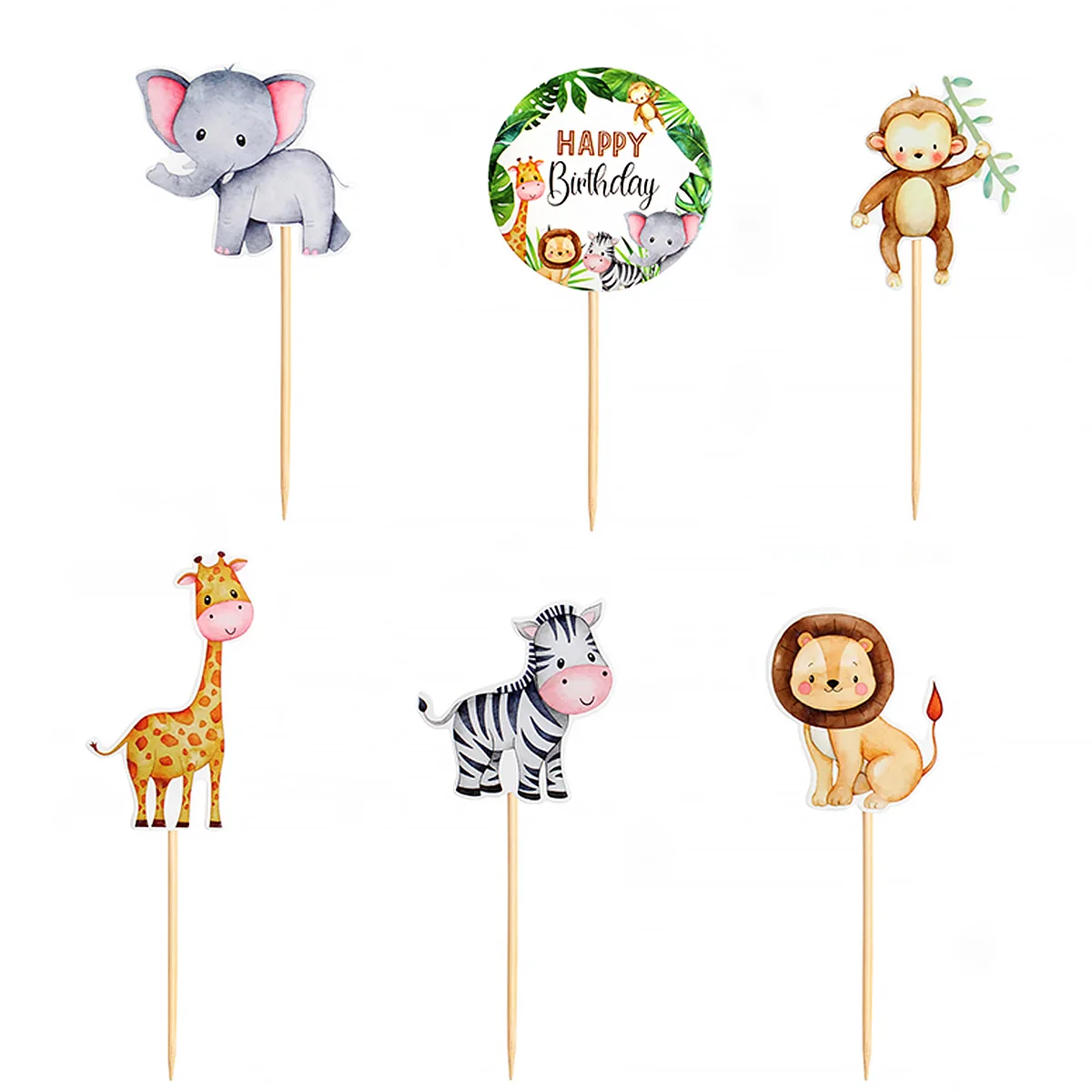 Kuchenaufsatz mit Wildtiermotiv, süßer Wald, Safari, Dschungel, Cartoon-Tier, alles Gute ...