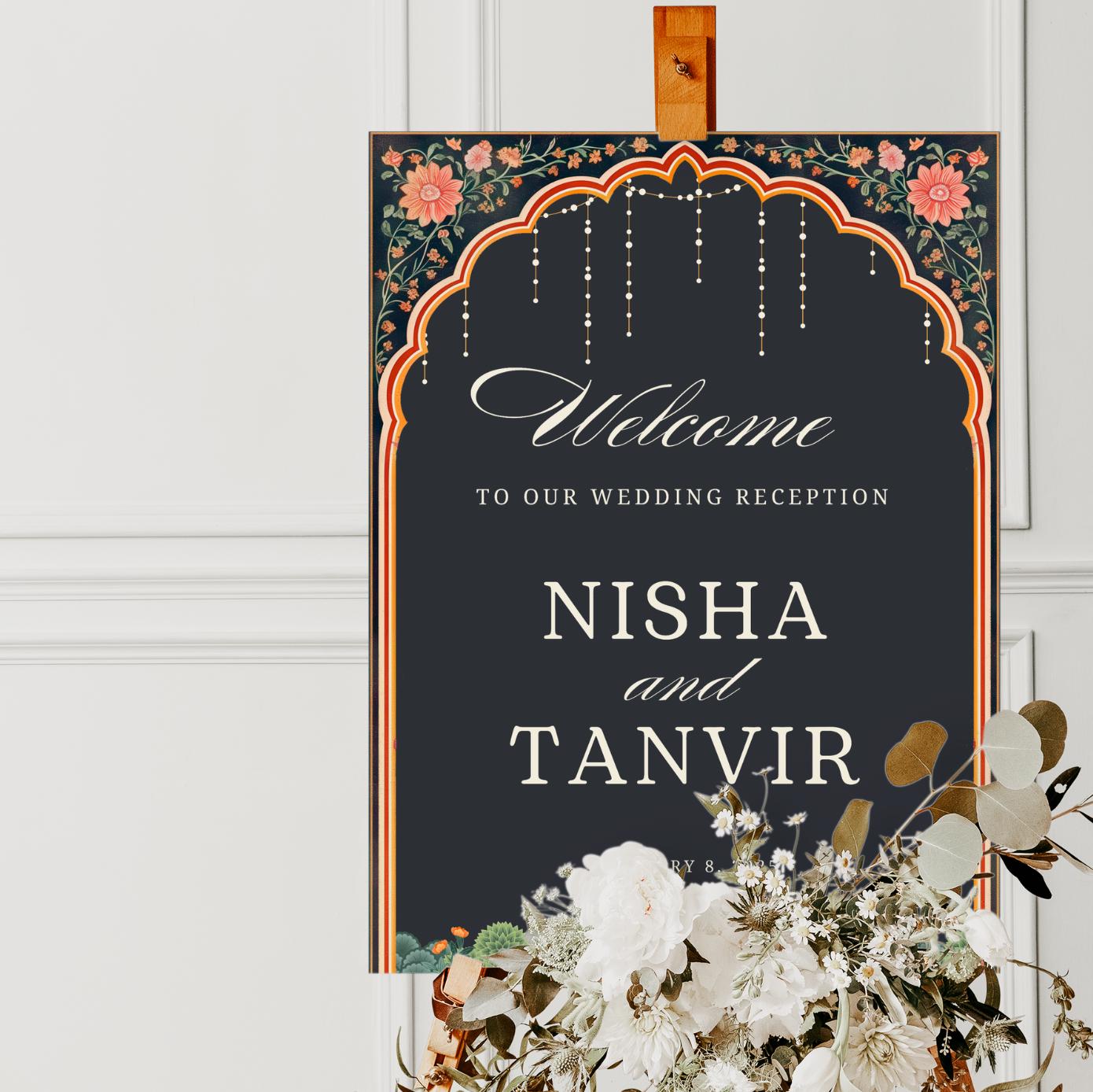 Indischer Empfang Willkommen Zeichen, Mehndi Hochzeitsdeko-Hintergr...