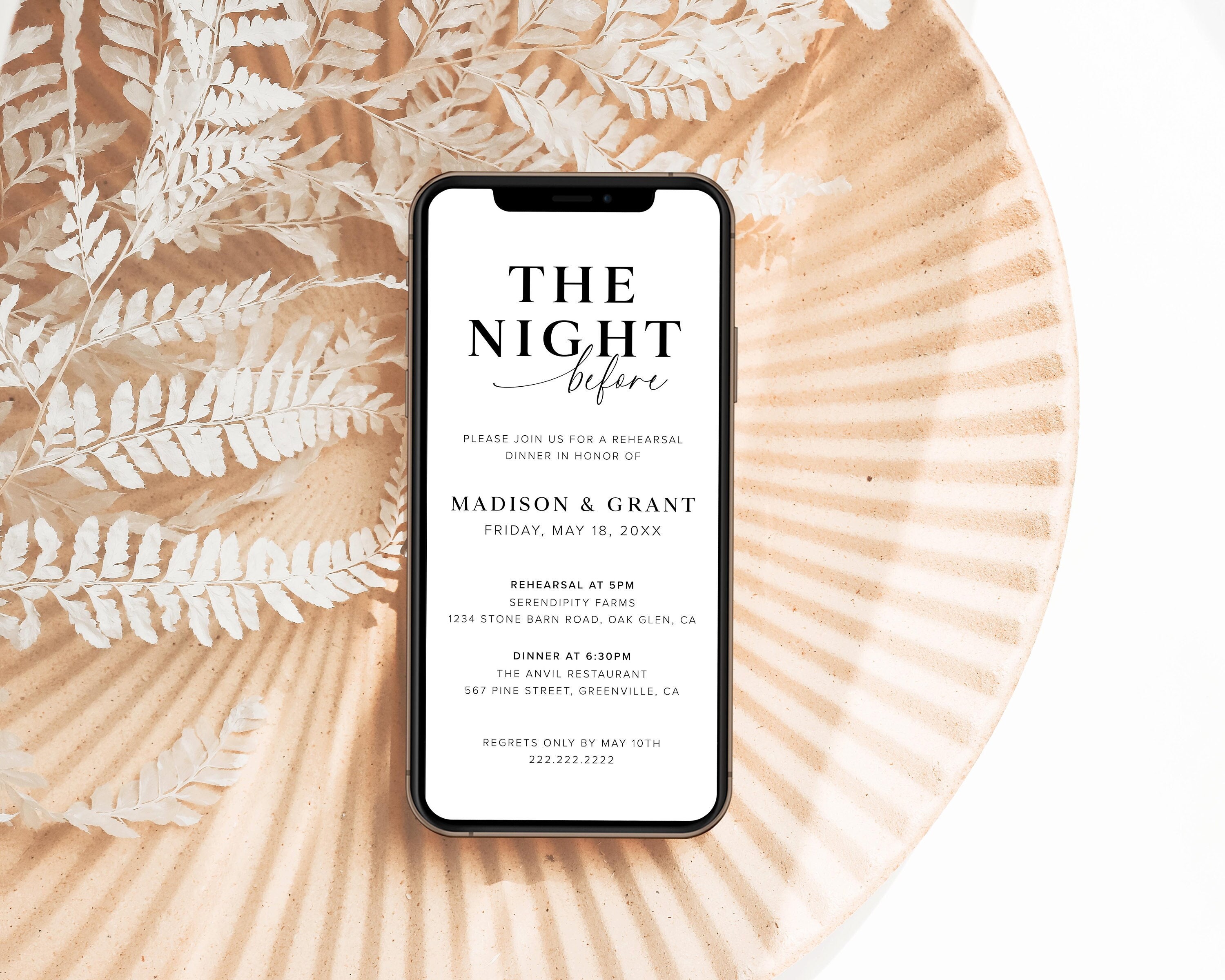 Digitale Rehearsal Dinner Einladung Vorlage, Minimalistische Elektr...