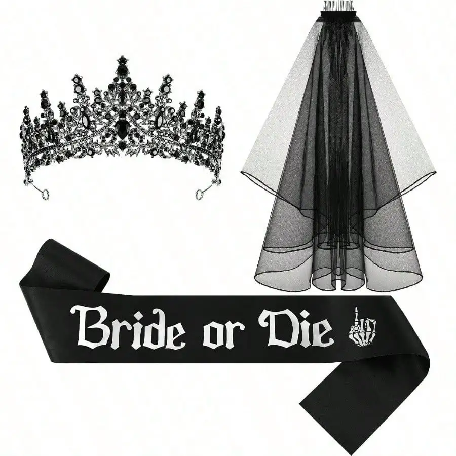 Braut oder sterben Bachelorette Party Dekorationen Set Braut Krone Schleier Schärpe für sc...