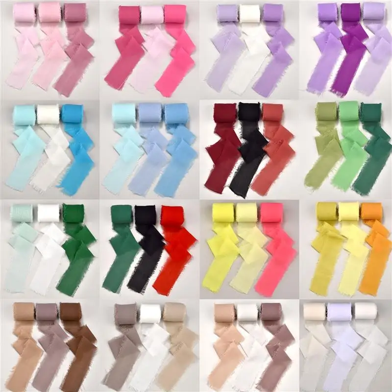 3 Rollen/Packung 5 Yards ausgefranste kantige Chiffon-Seiden bänder für Hochzeits einladun...