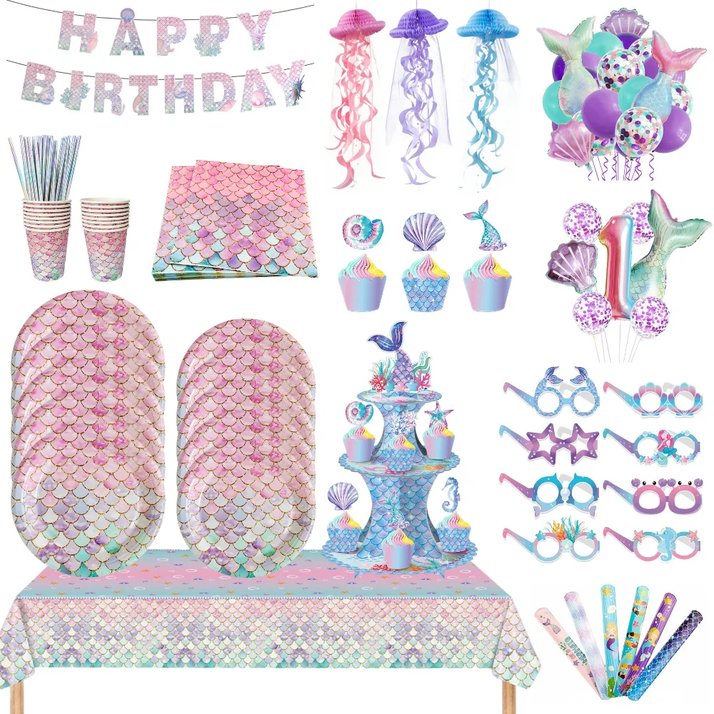 Meerjungfrau Geburtstag Party Dekorationen Kleine Meerjungfrau Einweg Geschirr Teller Tasse Banner B...