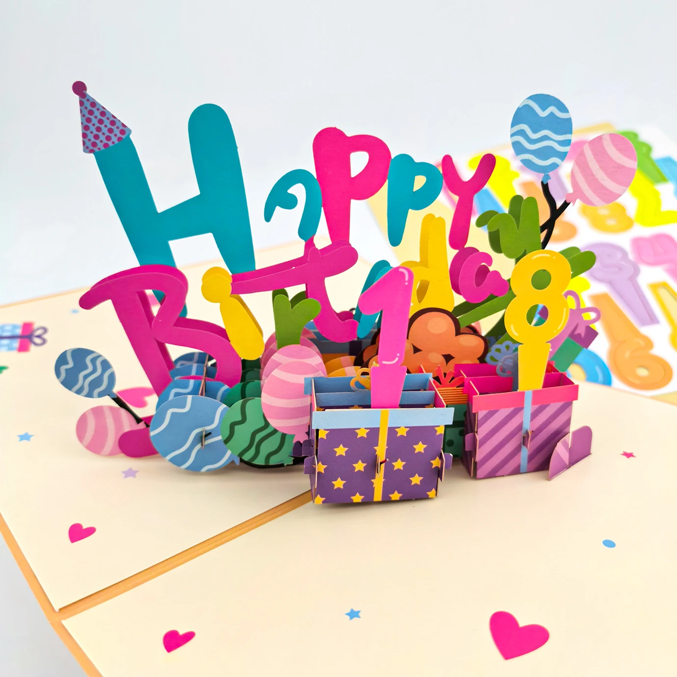 3D-Popup-Geburtstagskarte mit austauschbaren Zahlenfliesen | DIY-Altersdisplay | Konfetti- und Luftb...