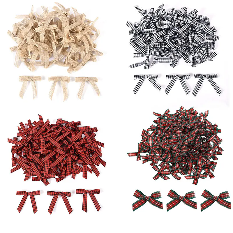 10/50Pcs Mini Weihnachten Bowknot Leinen Satin Band Bogen Weihnacht...