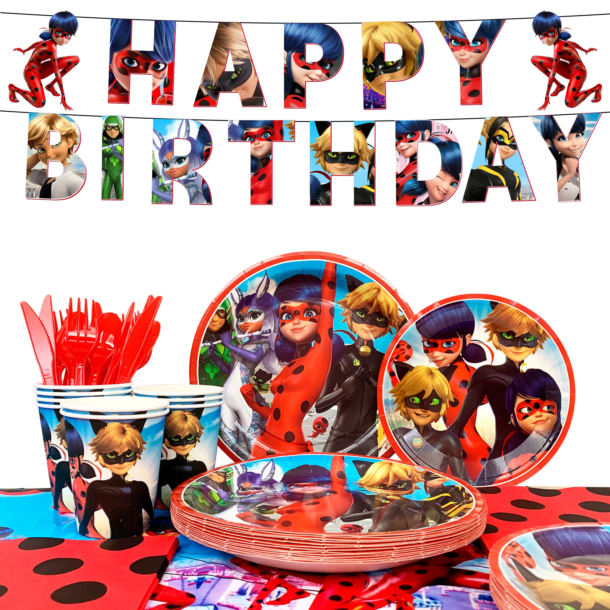 Miraculous Marienkäfer-Geburtstagszubehör, 114 Stück Miraculous Marienkäfer-Gebu...