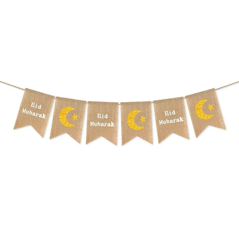 Eid Mubarak Banner 2024 Muslime Ramadan Mubarak Dekorationen Leinen hängende Flagge mit Seilen ...
