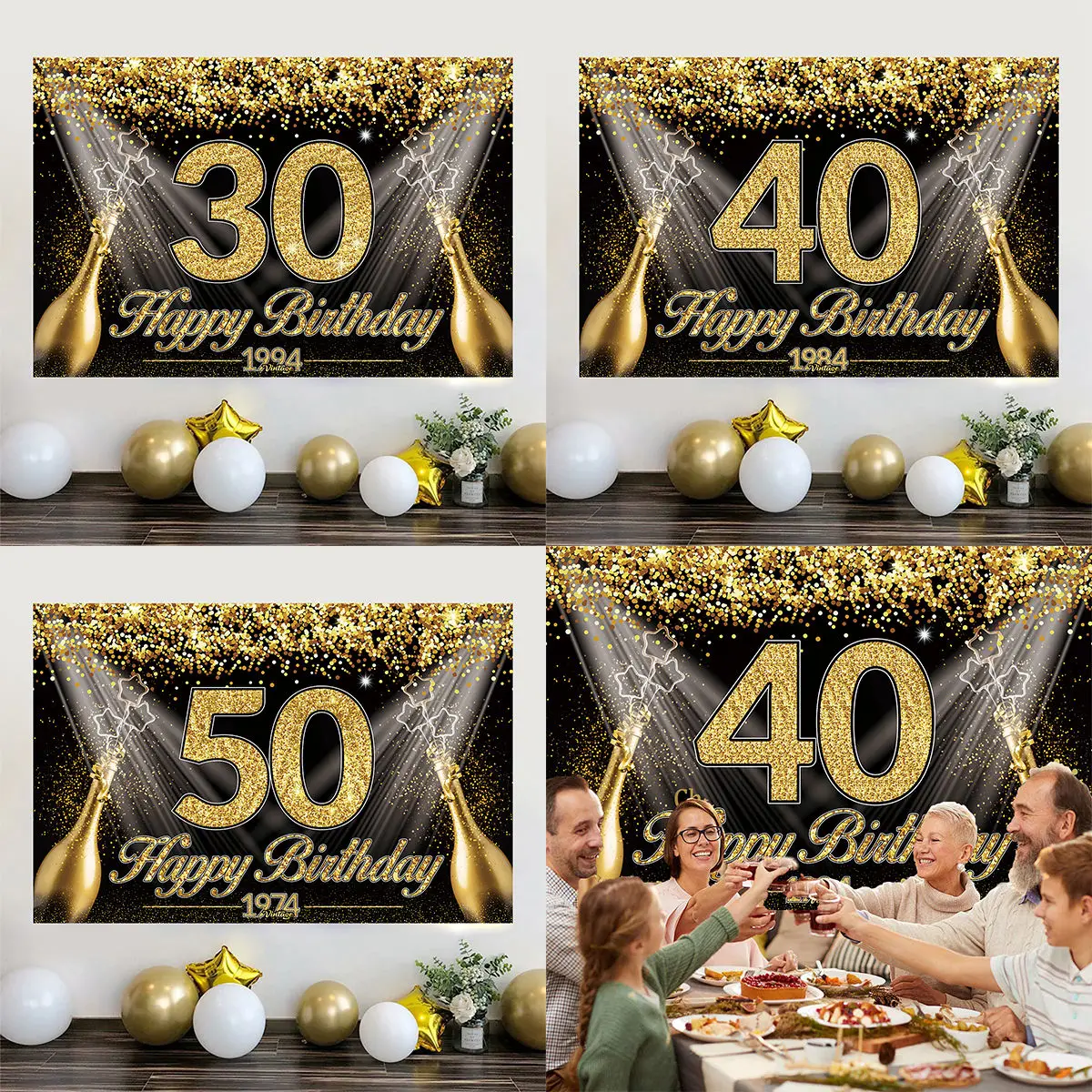 Alles Gute zum 30. 40. 50. Geburtstag Hintergrund Schwarz Gold Geburtstag Party Dekorationen Erwachs...