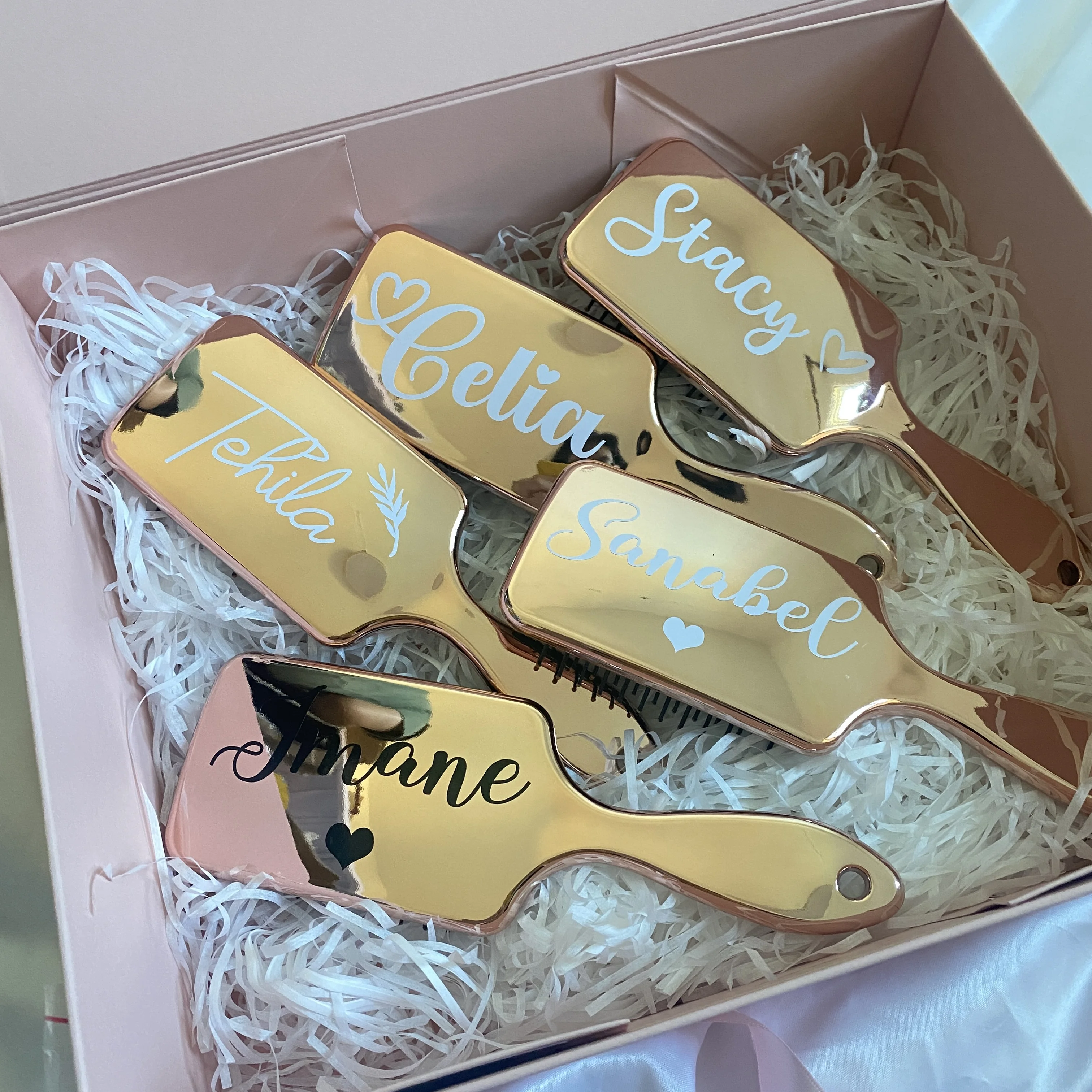 Personalisierte Haarbürste Brautjungfern Geschenk Benutzerdefinierte Airbag Spiegel Finish Pins...
