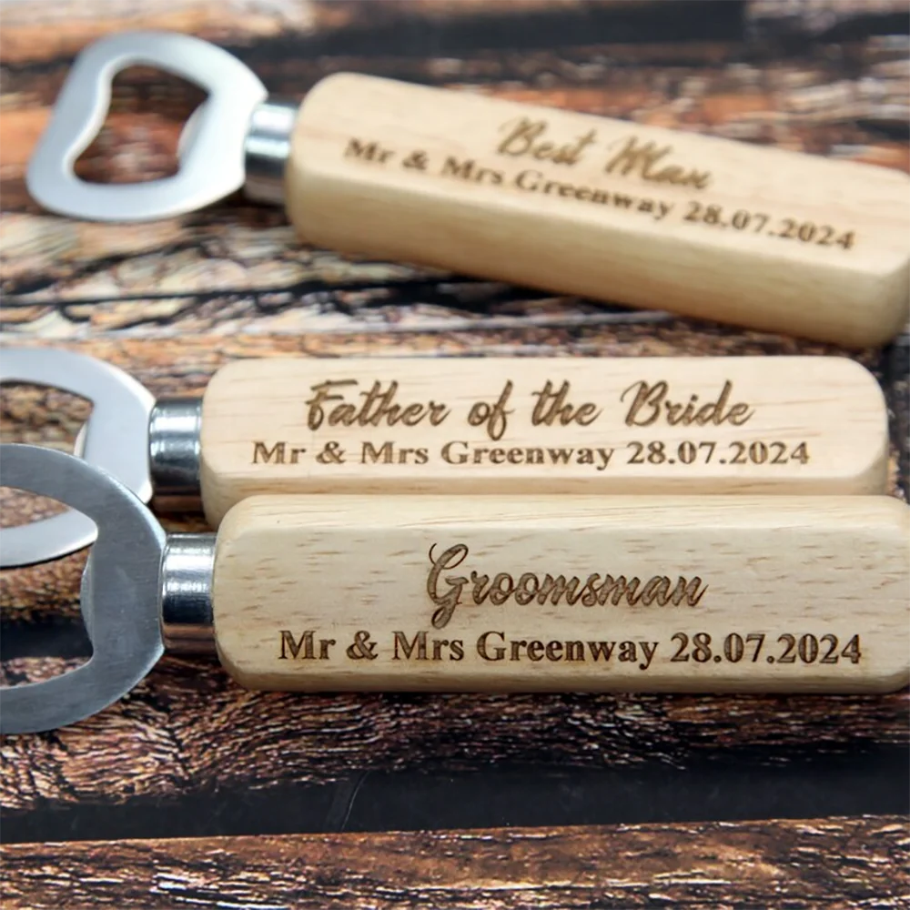 Personalisierter Flaschenöffner aus Holz, Geschenk mit Gravur, Hochzeitsgeschenk für Trauz...
