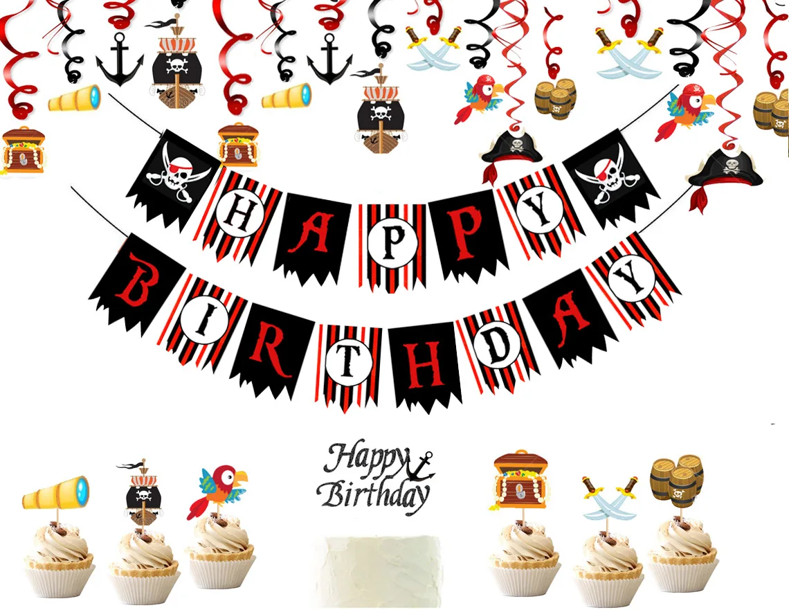 Piraten-Dekorationen, Banner, alles Gute zum Geburtstag, Hintergrund, alles Gute zum Geburtstag, Wan...