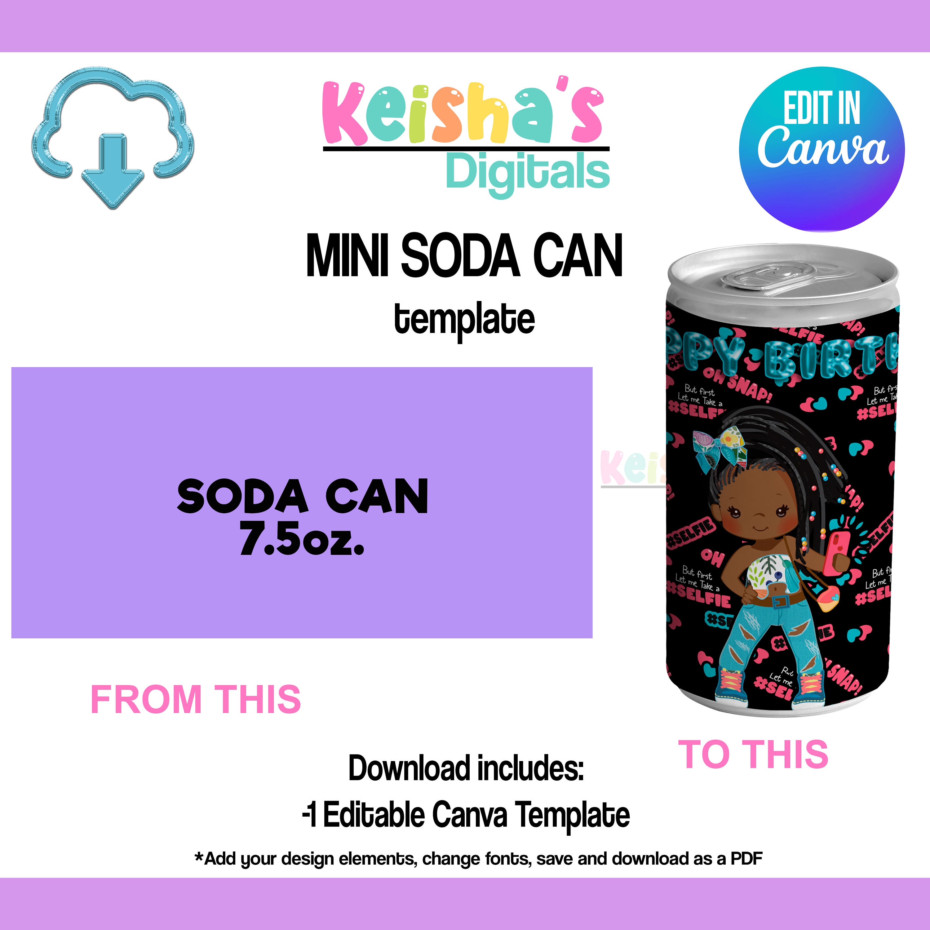 Mini Soda Pop Can Canva Vorlage, Mitbringsel Vorlage, DIY Party, Le...