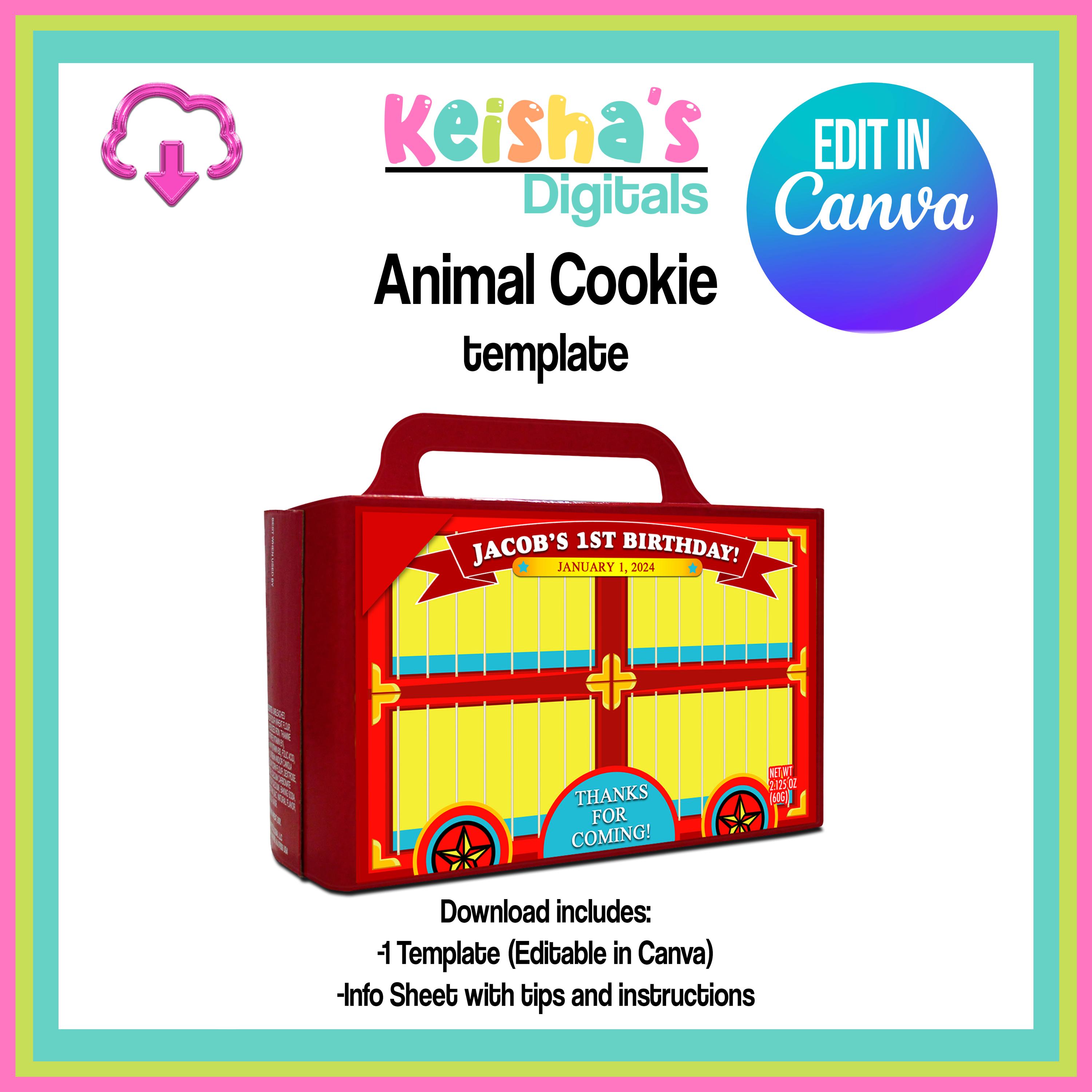 Tier Kekse Cracker Canva Vorlage, Party Favor Vorlage, DIY Party, l...