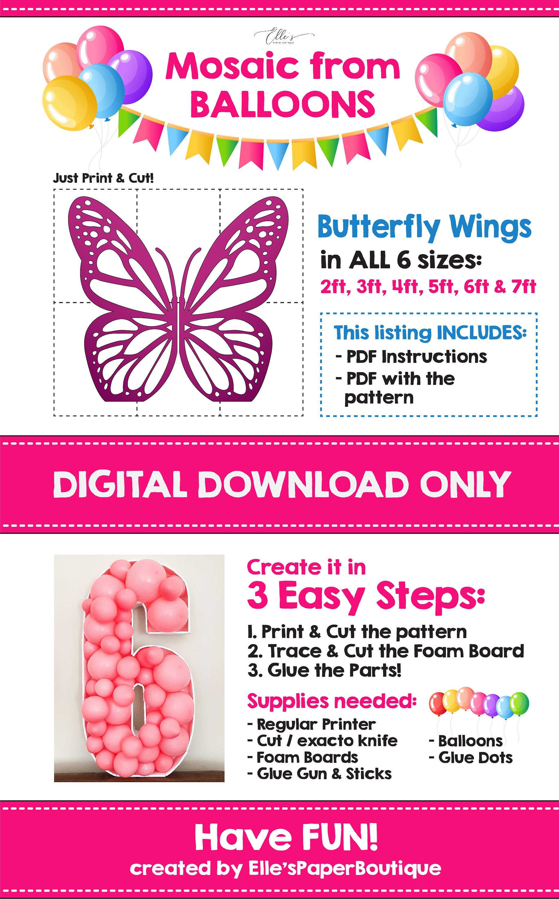 Schmetterling Flügel Prop Vorlage, Mosaik Vorlage, Geburtstag ...