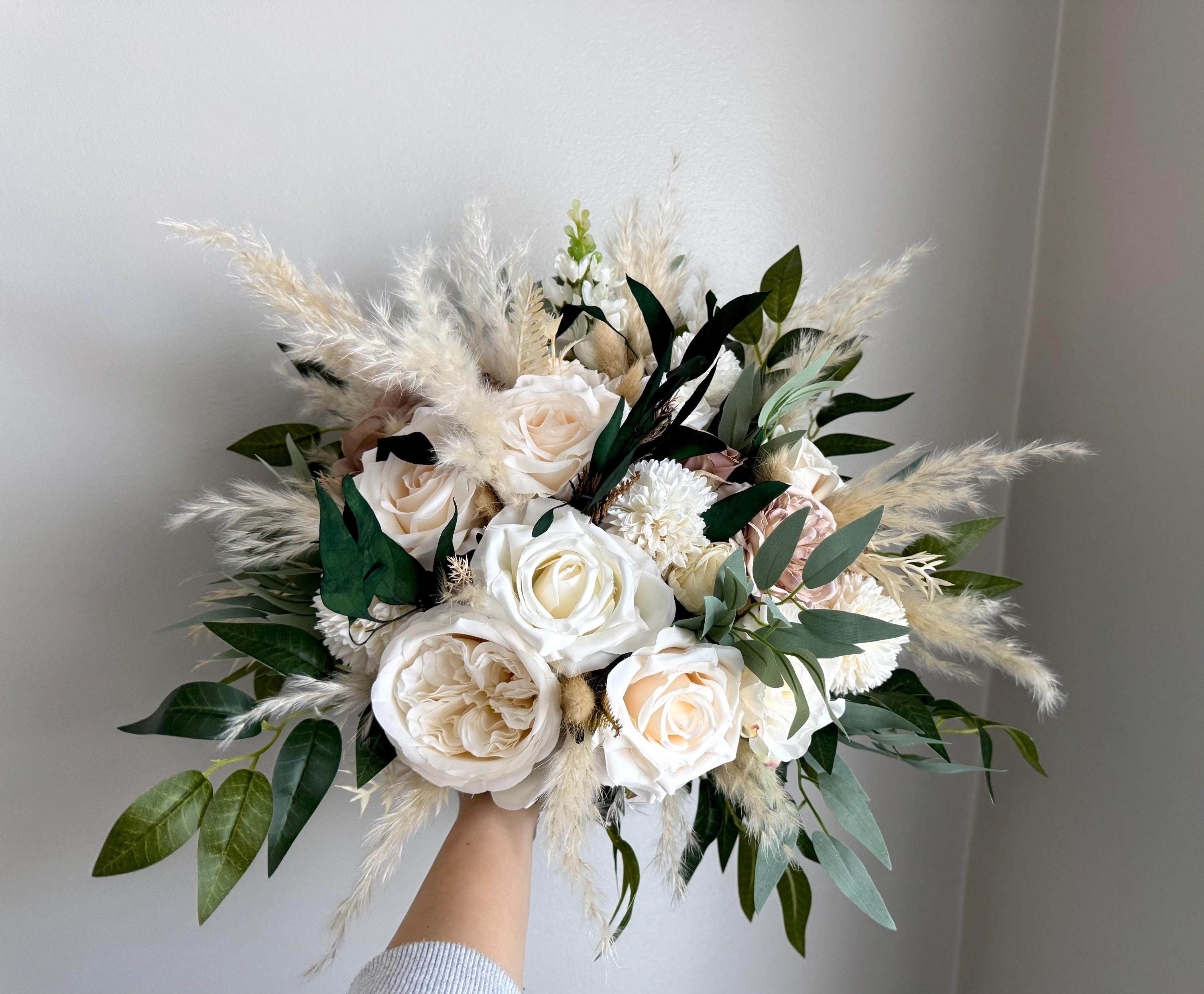 Wedding Bouquet Boho Ivory White Brown Pampas Wedding Boho Taupe Br...