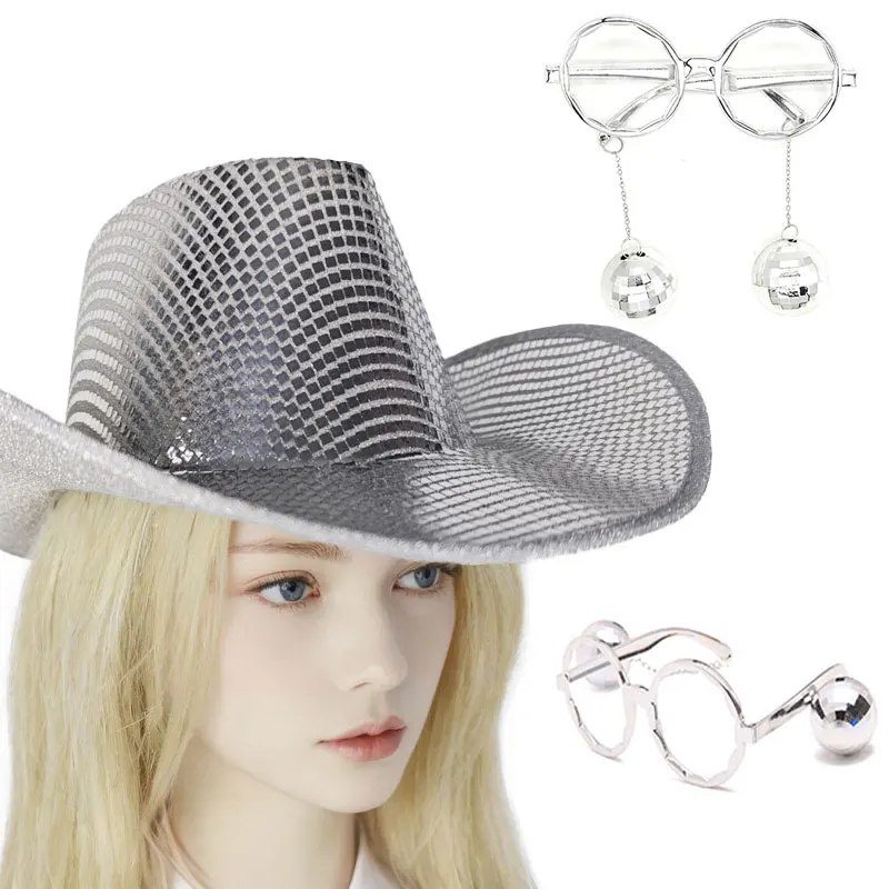Vintage Disco glänzende Pailletten Hut Spiegel Glitzer Disco Ball Anhänger Brille Bar Club...