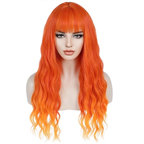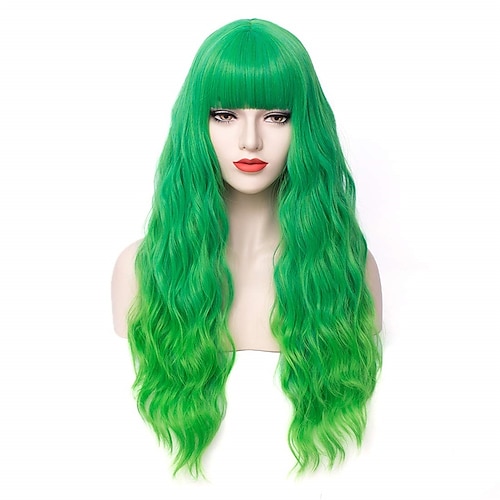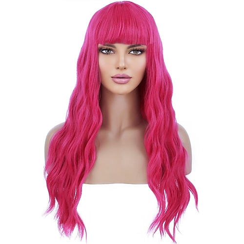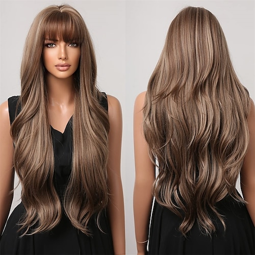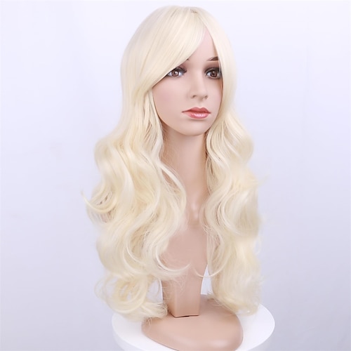 Lange blonde Perücke mit Pony, lange lockige, gewellte blonde ...