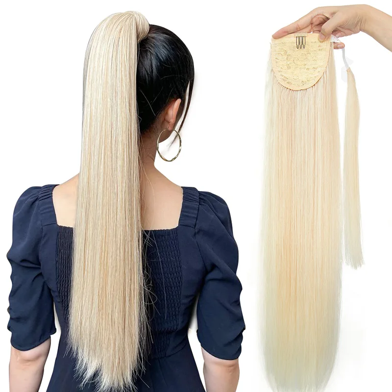 # 60 Pferdeschwanz, Echthaar, natürliche Echthaarverlängerungen, umwickelbare Clip-on-Pfer...