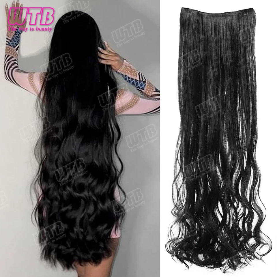 40-Zoll-Haarteil aus Kunstfaser, langes gewelltes Haarteil, dicke Haarteile, natürliche schwarz...