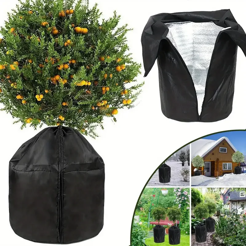 Anti-Frost-Pflanzenabdeckung, Winter, warm, Vliesbeutel, Reißverschluss, Kordelzug, Frostschut...