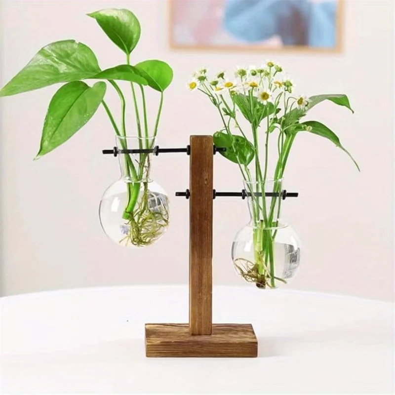 Pflanzenterrarium-Vermehrungsstation, Glas-Pflanzgefäß-Glühbirnenvase mit Holztablet...