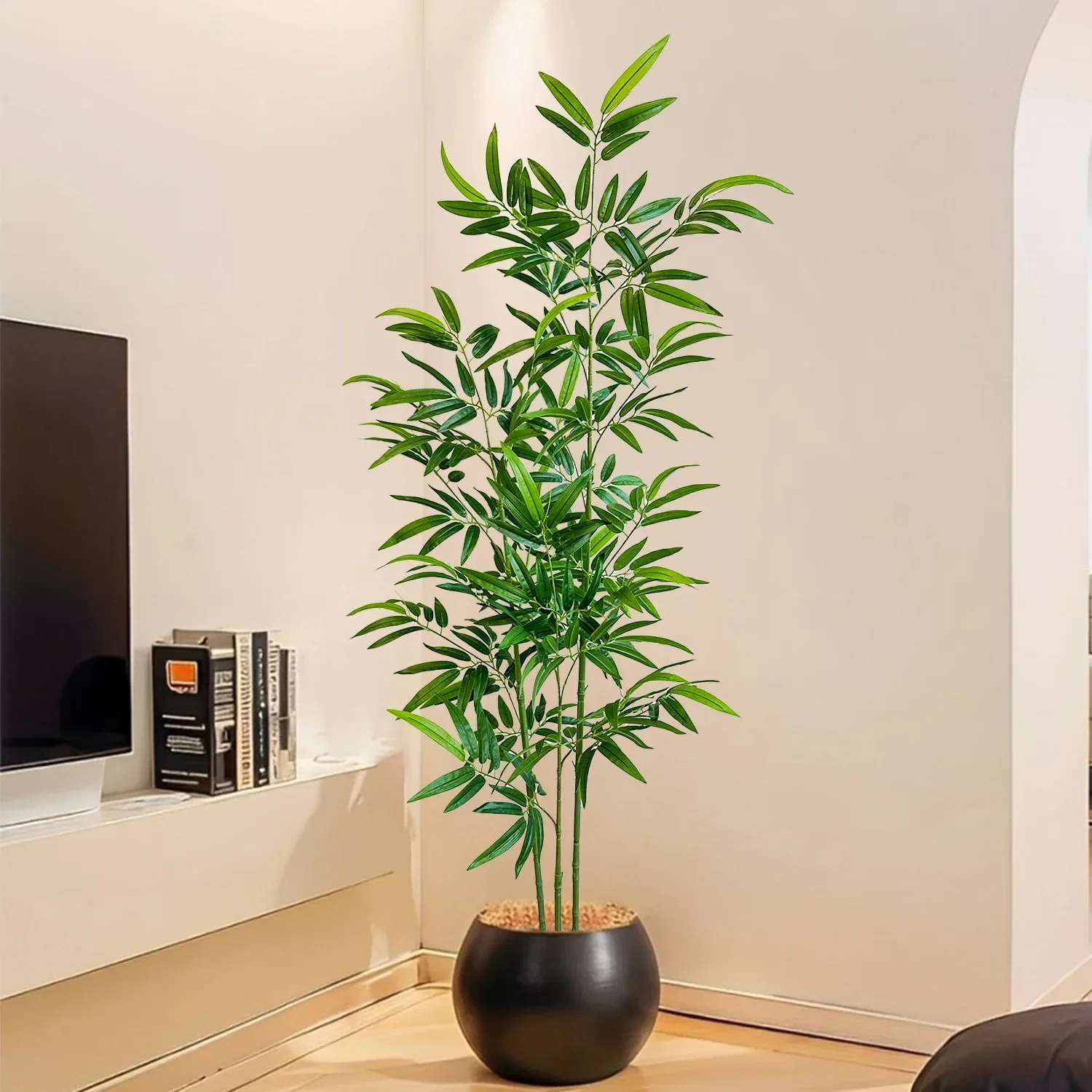 Simulation grüner Bambus PVC + PU großes grünes Blatt Bambus Kombination Boden Topff...