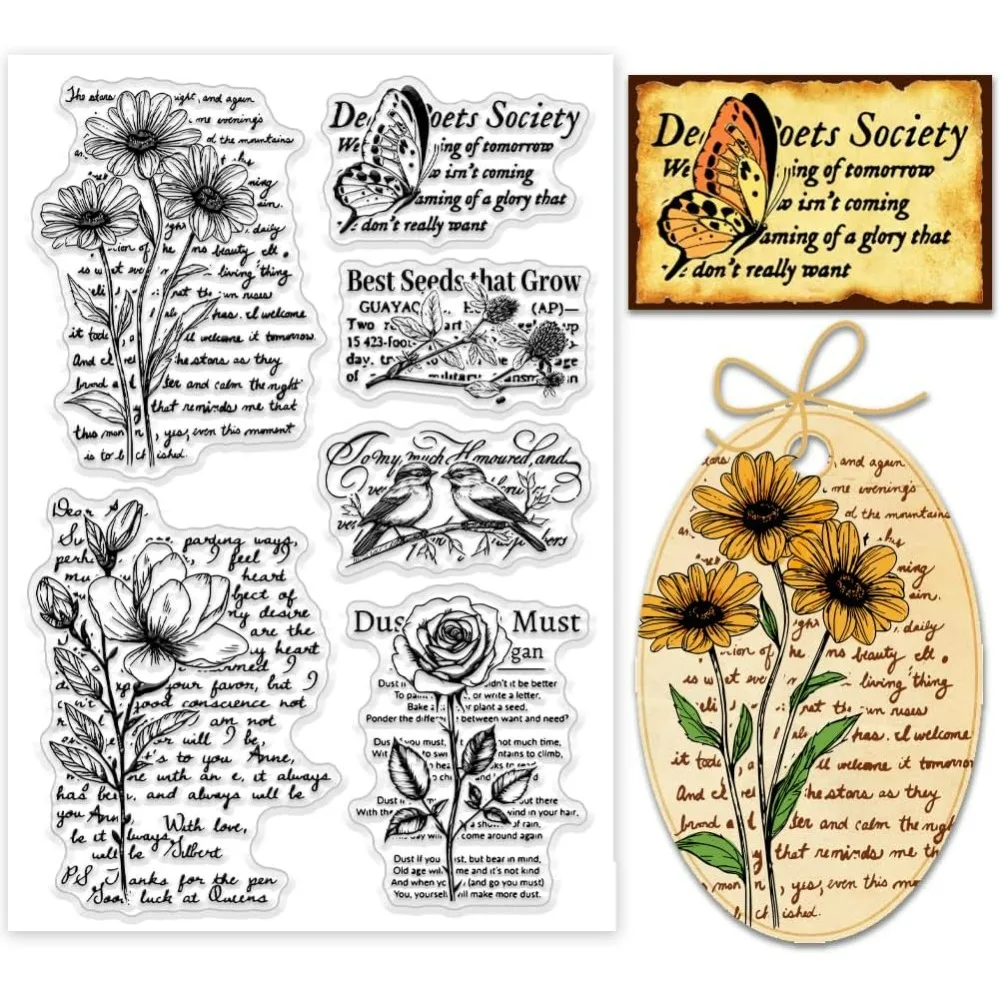 Transparenter Vintage-Pflanzenstempel, rechteckiger Kunststoffstempel, 4,3 x 6,3 Zoll, transparent