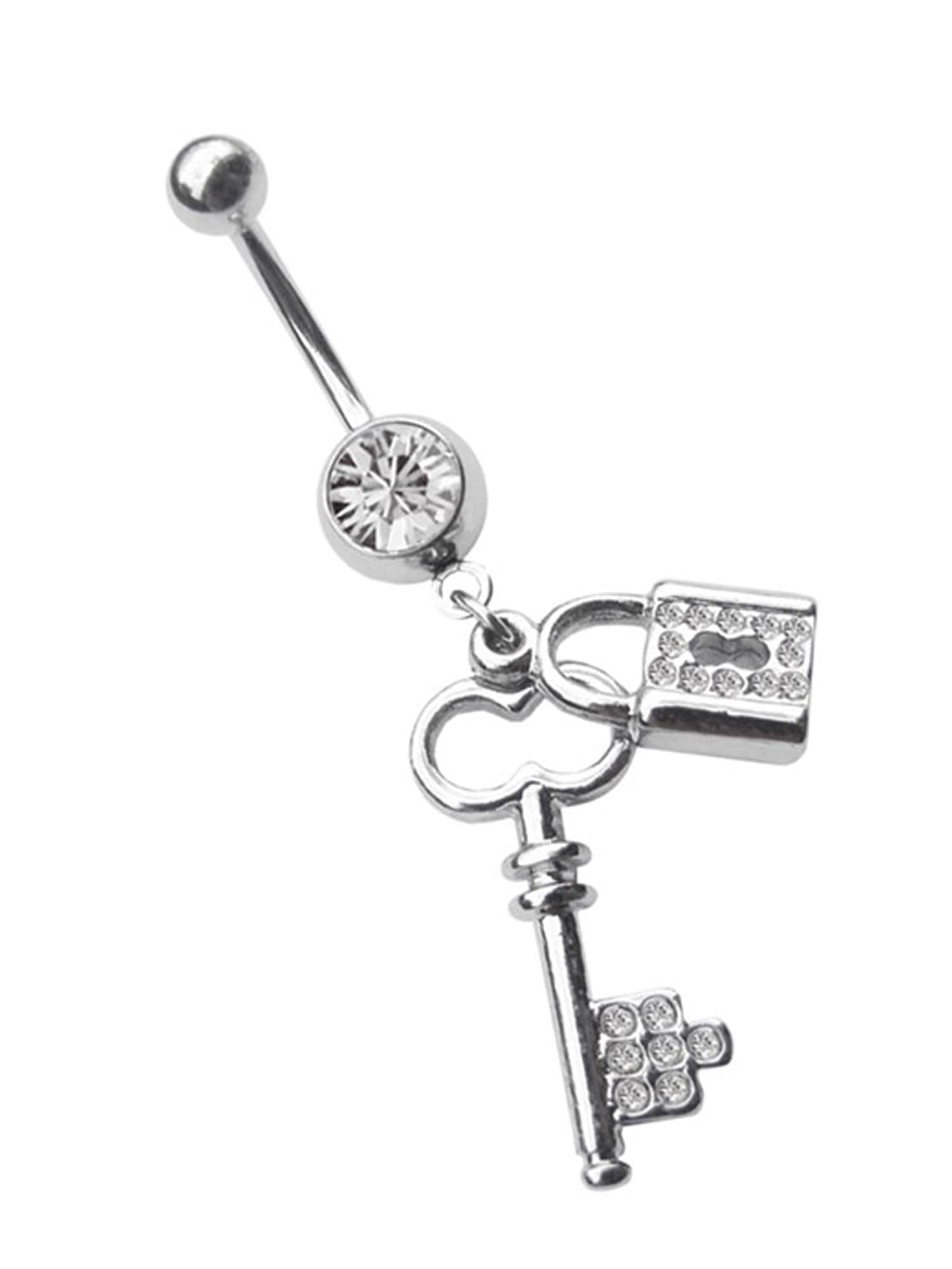 Bauchnabel Piercing Schmuck Stecker - Banane mit 8 mm Steinkugel + Anhänger mit Schloss und Sch...