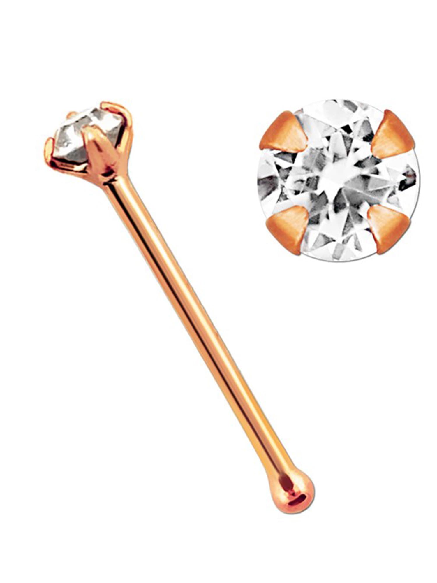 Nasenstecker - aus 925 Silber, 18kt PVD Rosè Gold beschichtet mit klarem Stein, Fassung 2,0 m...