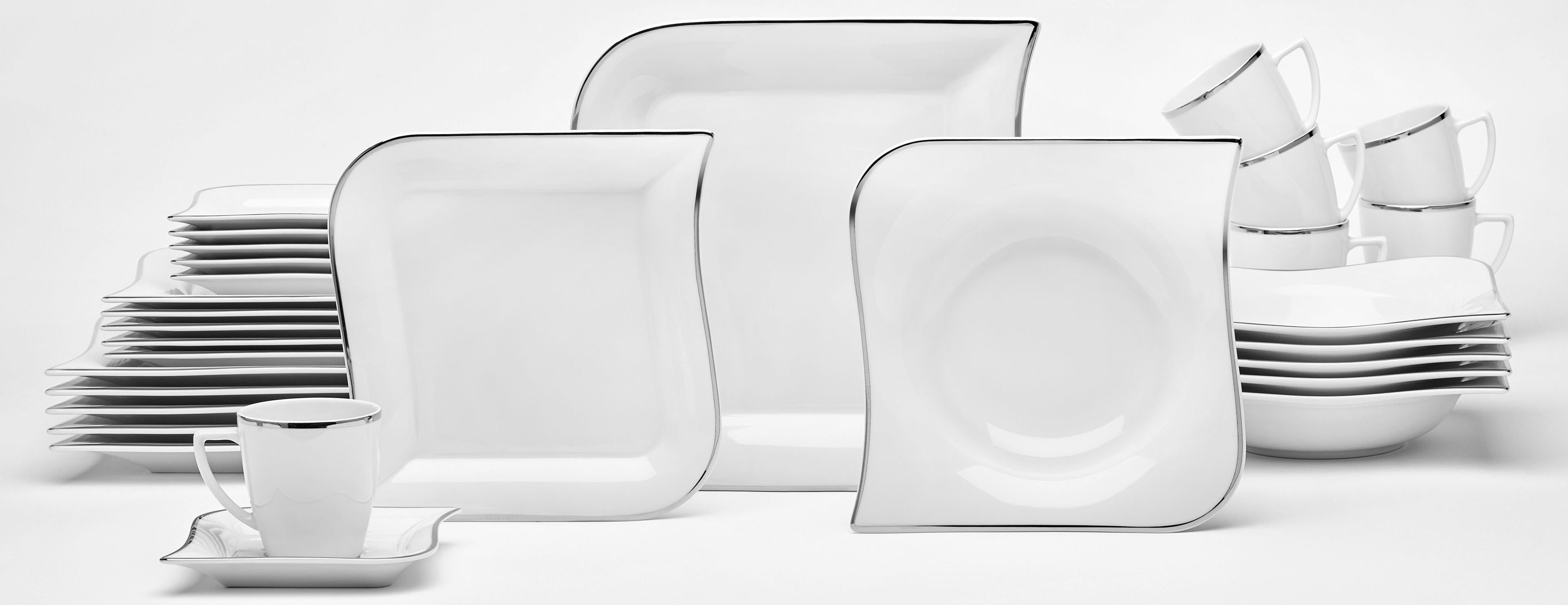 vanWell Kombiservice »Silverline« aus hochwertigem Porzellan in geschwungener Form mit s...