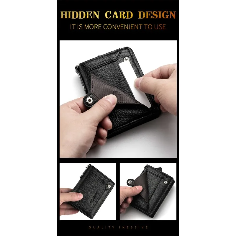 Anti-Diebstahl Herren Leder Geldbörse Reißverschluss Geldbörse Kredit Klassische Ret...