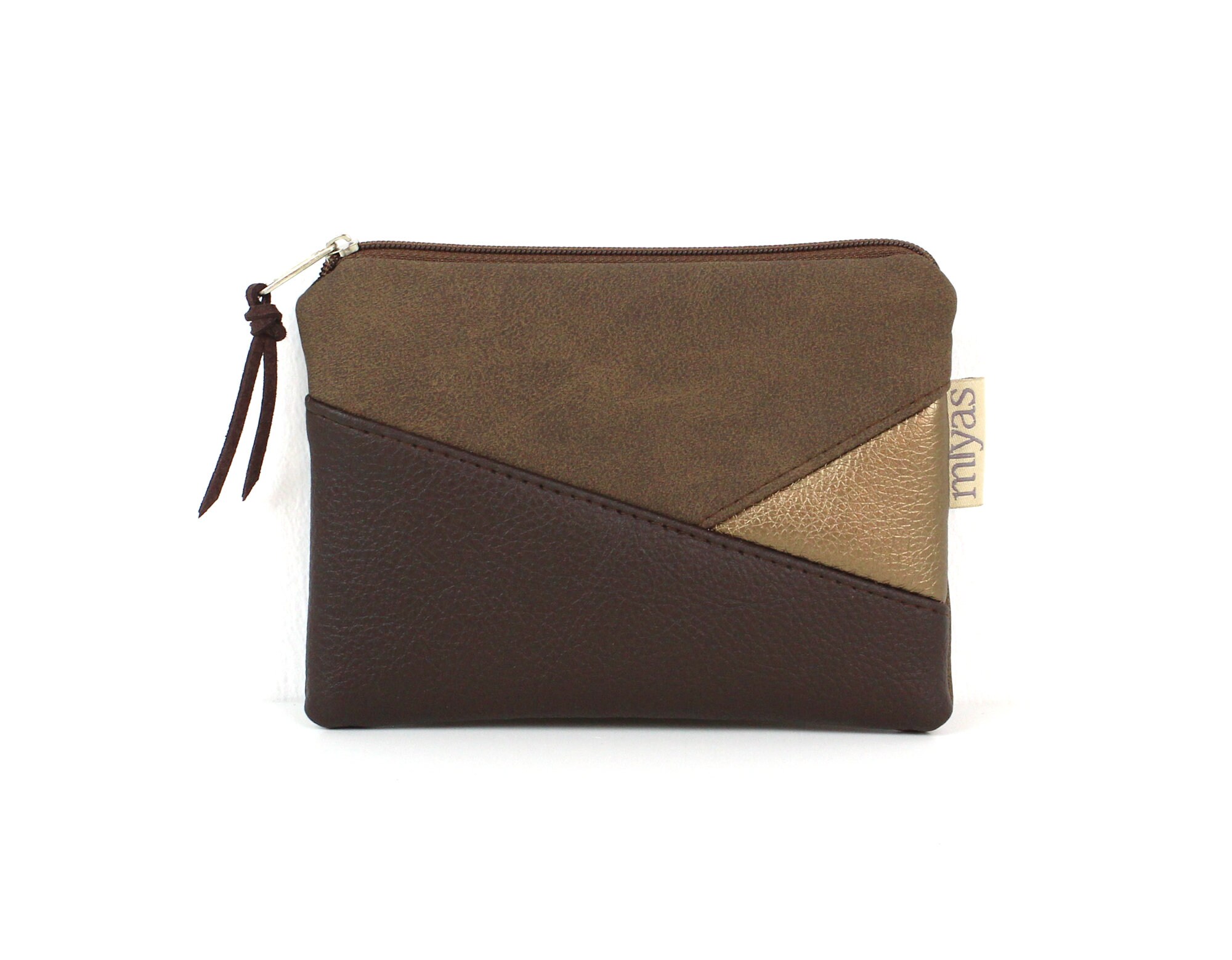Süße Geldbörse mit Dreiecken, kombiniert mit weichem Kunstleder in Braun. Auf der R&...