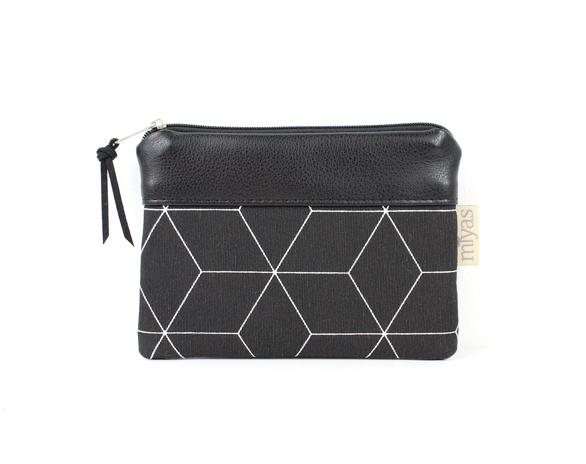 Hübsche Geldbörse mit graphischem Muster in Schwarz-Natur, kombiniert mit weichem Kunstled...