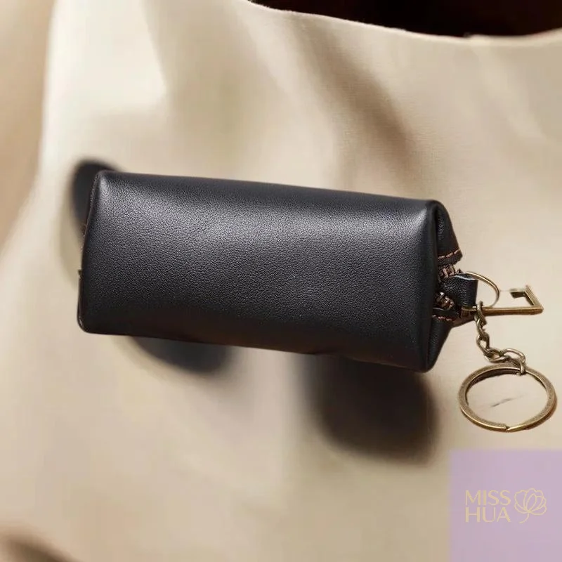 Retro-inspirierte Leder-Geldbörse, einfaches Etui mit Reißverschluss, Karten- und Schl&uu...