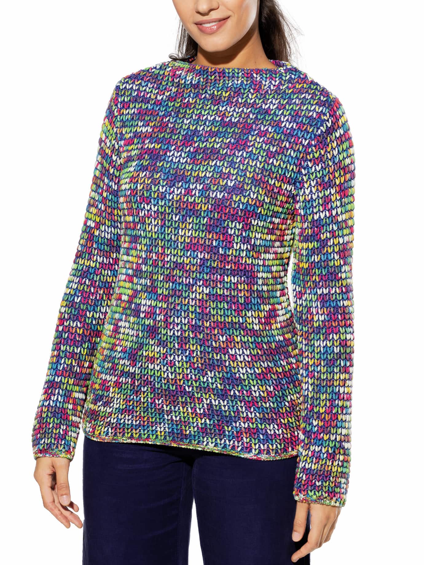 Walbusch Damen Leichtgewicht-Pullover Blau mehrfarbig