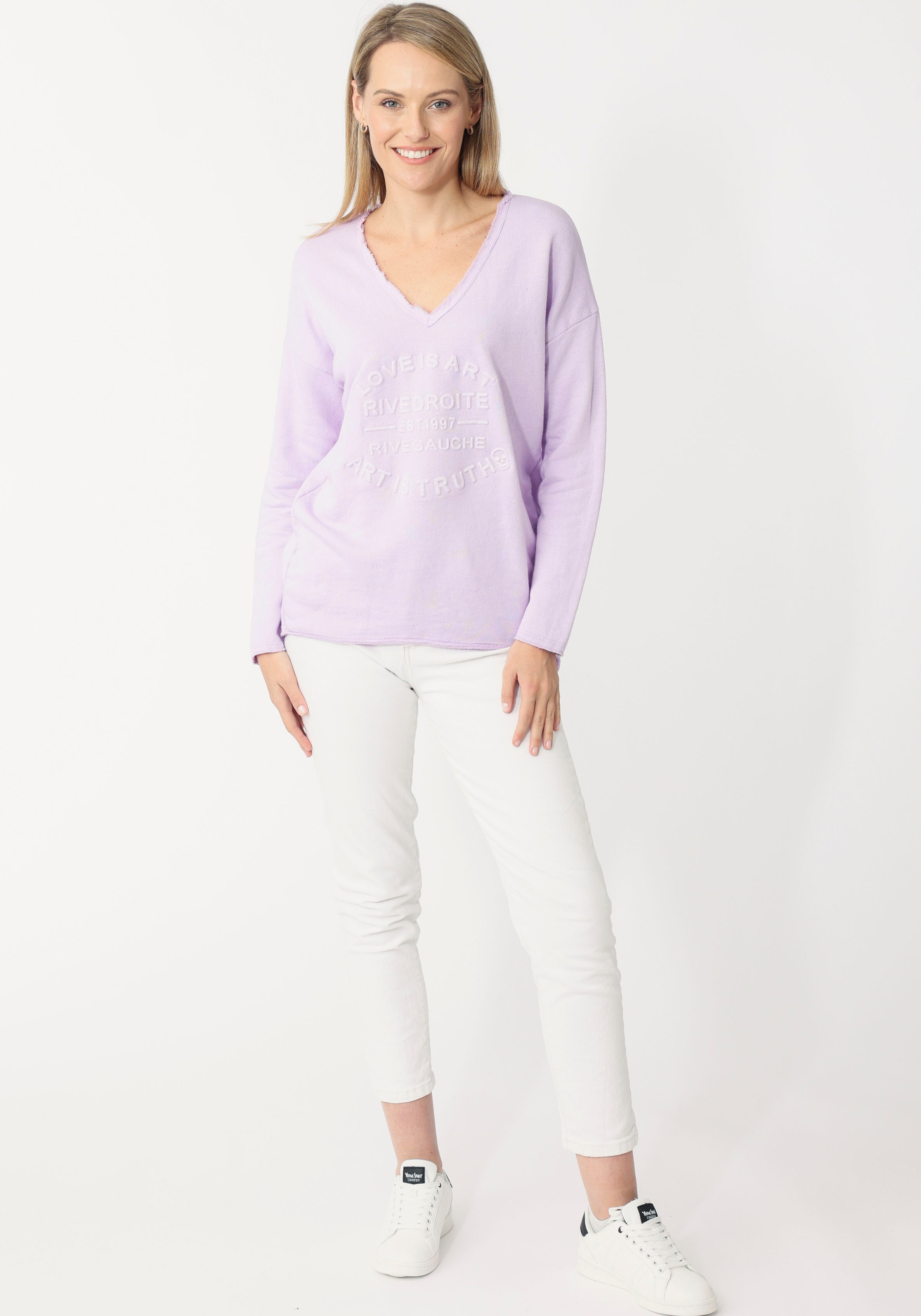 Kombistarkes Damen-Sweatshirt von Zwillingsherz im Used-Look. Mit einem Po-bedeckenden und weiten Sc...