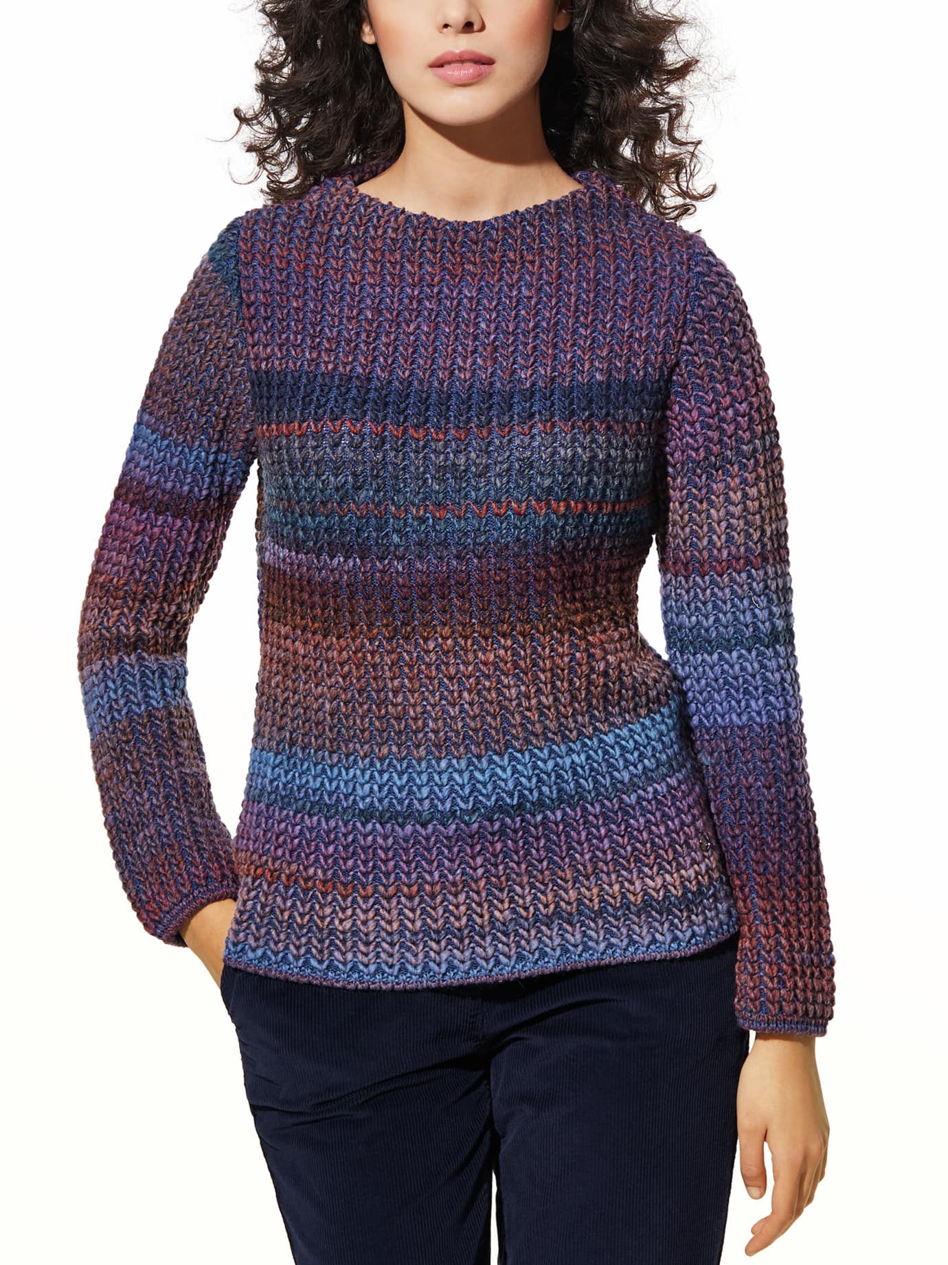 Walbusch Damen Grobstrick-Pullover Farbverlauf Blau gemustert