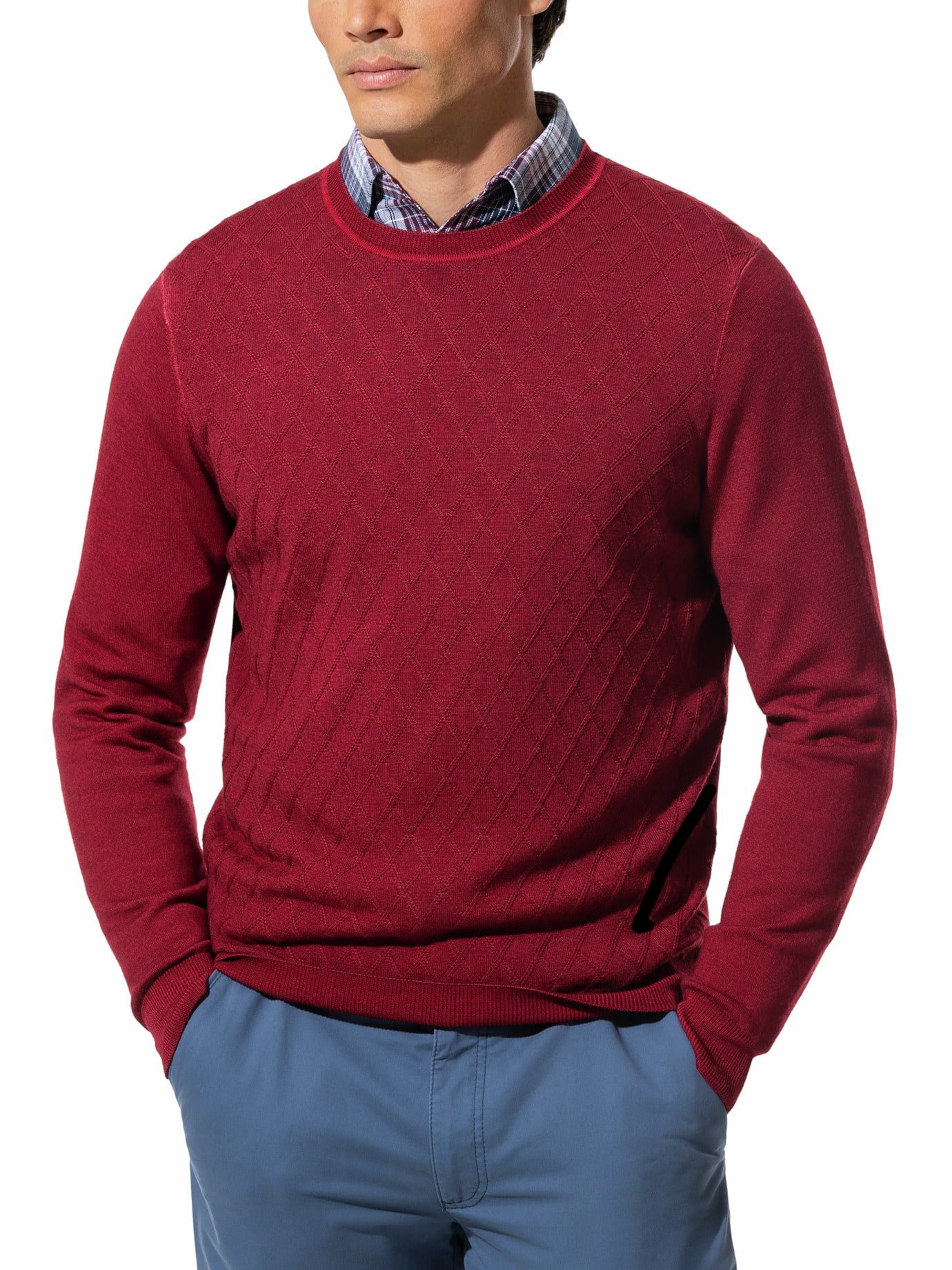 Walbusch Herren Struktur-Pullover Merino Extrafein Rot