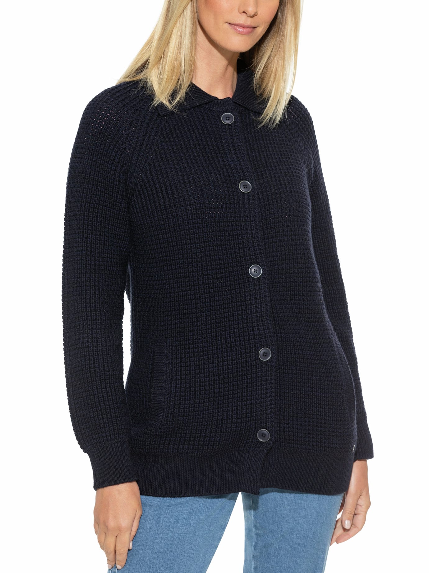Walbusch Damen Merino-Strickjacke Waffelstruktur Blau