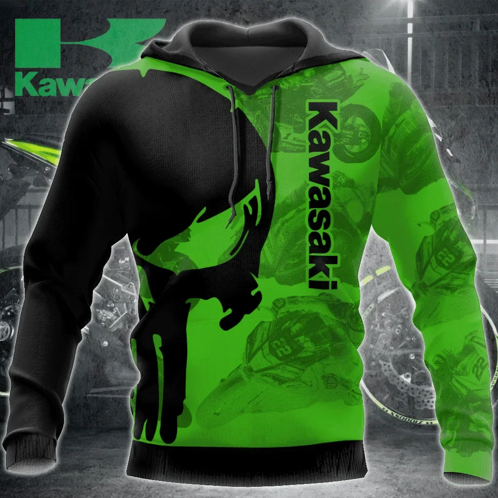 Kawasaki Motorrad Pullover Hoodie Erwachsene Streetwear Mit Kapuze Unisex Motorrad Sweatshirts Pullo...