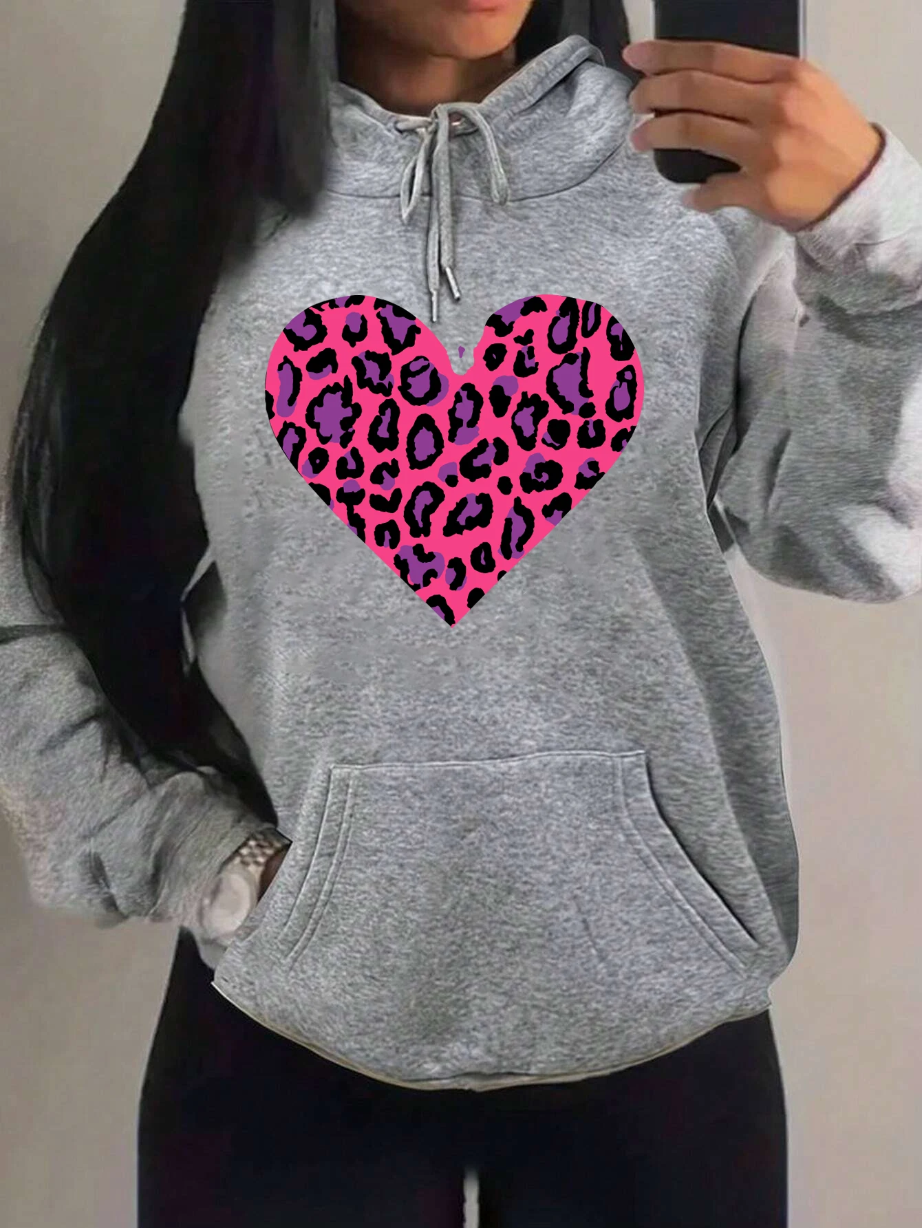 Rosa Leopard Print Herz Druck Hoody Frauen Mode Übergroß...