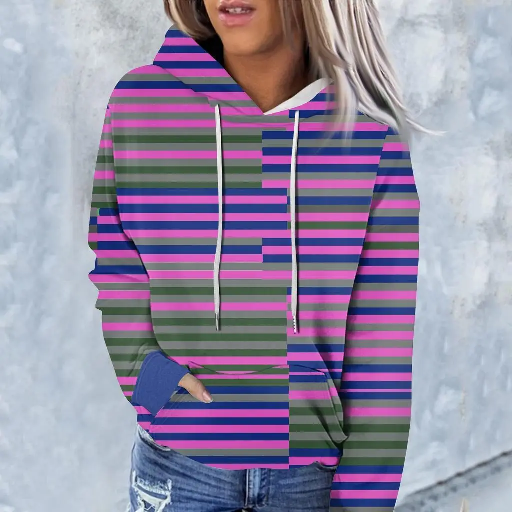 Bunte Streifen 3D Gedruckt Hoodies frauen Mode Streetwear Casual Sw...