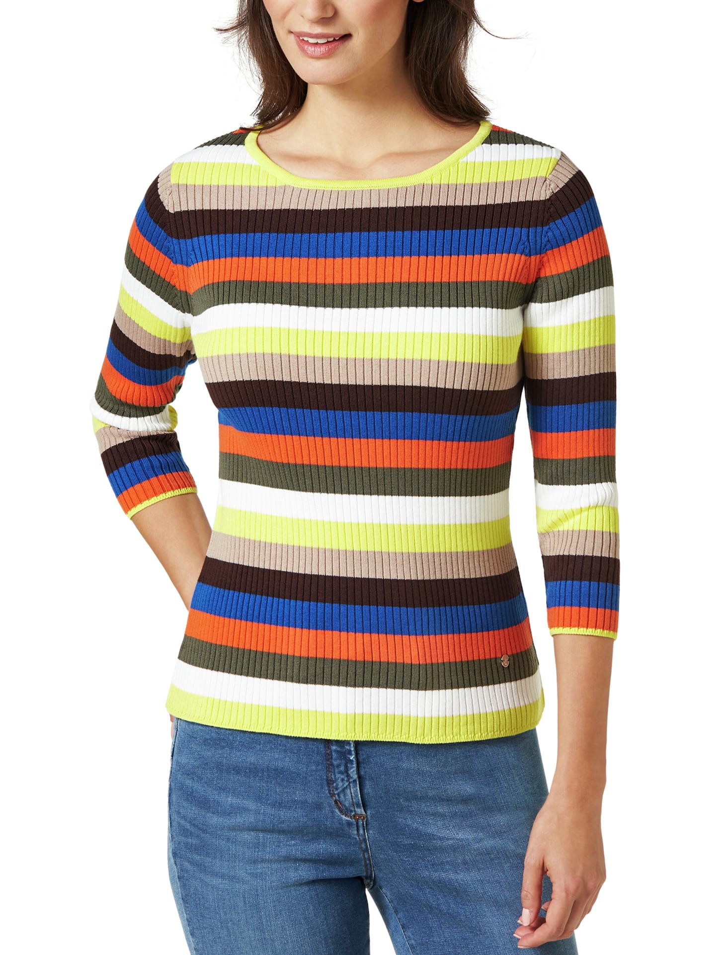 "Mehr gute Laune im Sommer. Dafür sorgt dieser Pullover schon rein optisch. Die farbigen S...