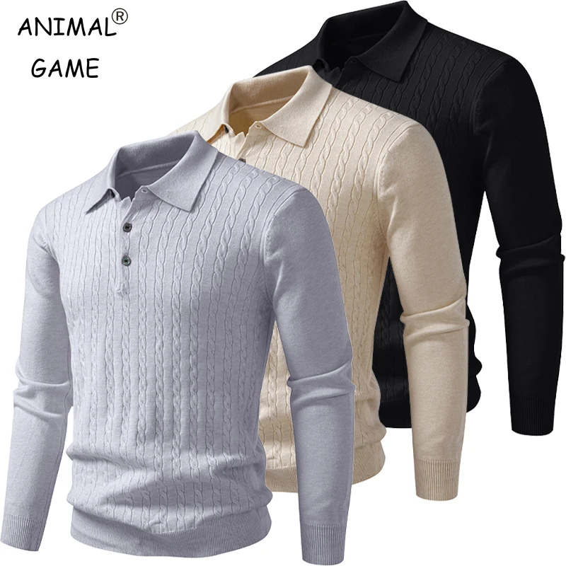 Herbst Herren Polo Pullover V-ausschnitt Langarm Stricken Knopf Polos Gerippte Casual Kleid Pullover...