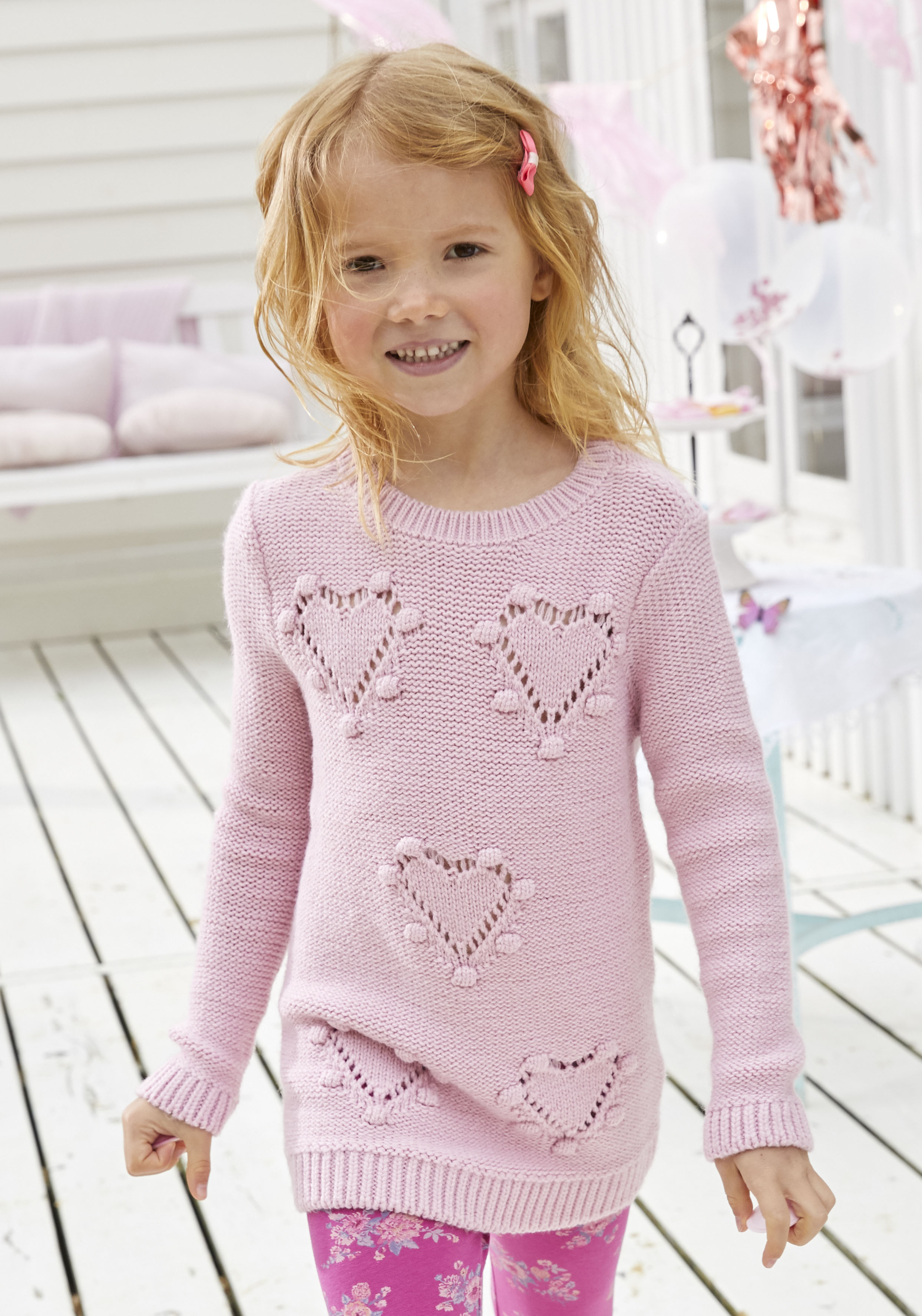 Modischer Strickpullover der Marke KIDSWORLD mit Herzen. Mit einem Po-bedeckenden und normal breiten...